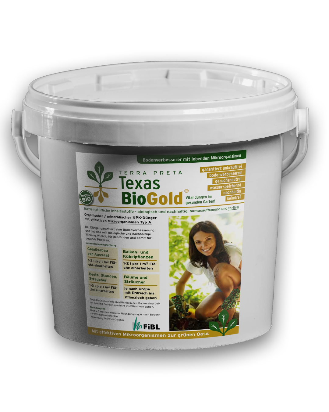 Het activeert de bodem met de kracht van micro-organismen en organische componenten. De plant blijft gezond en bestand tegen stress en invloeden van buitenaf. Vervaardigd volgens een Duits patent, is de Texas BioGold gemaakt van waardevolle grondstoffen gecombineerd met miljarden micro-organismen